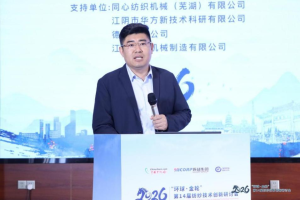 3 月 27 日上午,大会正式开幕,赛特环球机械(青岛)有限公司总经理郭加阳发表致辞。他表示,赛特环球深耕机械制造领域六十年,始终坚守创新初心,聚焦数智化、绿色化纺纱装备研发赛道持续突破:企业着力突破远程诊断、智能搬运等行业关键技术,构建纺织车间智能物流人机协同新模式;依托粗细联、筒纱智能包装物流系统等核心产品与技术,以专业能力赋能产业升级,与行业同仁携手推动棉纺行业向新质生产力转型。