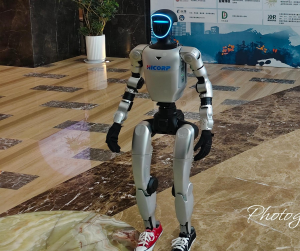 研讨会现场,环球集团新员工“智元”机器人公开亮相。